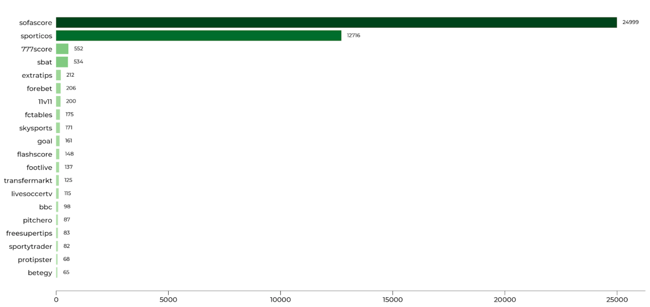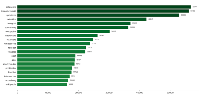 Wśród serwisów, które znalazły się najczęściej w badanym zbiorze były Sofascore, Sporticos i Transfermarket.
